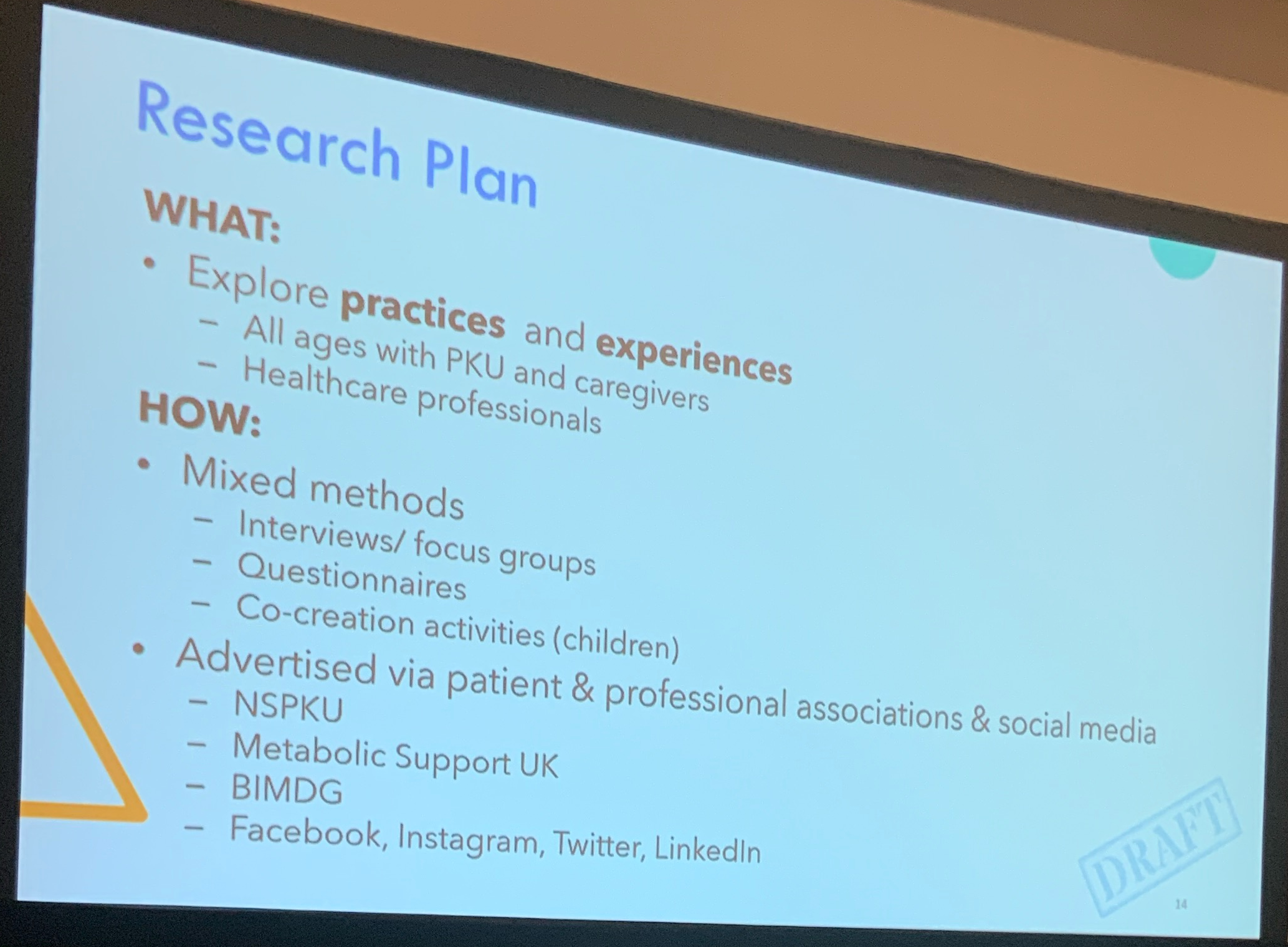 The NSPKU conference, held from 17-19 May 2024, included several updates on forthcoming research. These are my notes from the session by Giana de Sousa, Lead Paediatric IMD dietitian, Nottingham & NIHR researcher.